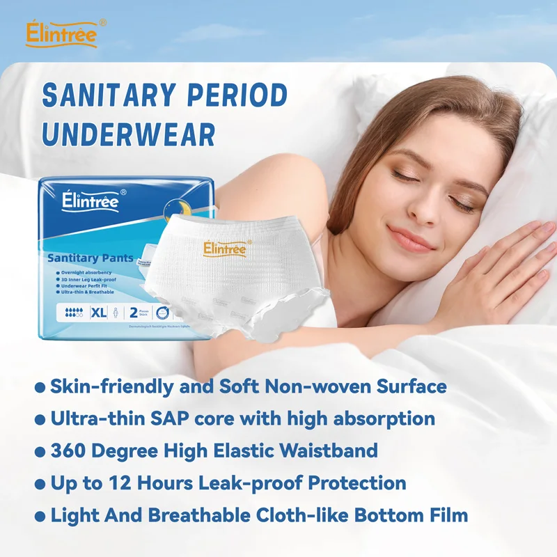 Lady menstrual diaper, also widely known as overnight sleep pants, are a specialized, single-use, pant-style sanitary product exclusively designed for women during their menstrual cycle. Essentially, this innovative product ingeniously combines two essential items into one: an ultra-long, super-absorbent sanitary pad with exceptional liquid-locking capacity, and a comfortable, disposable pair of underwear with a snug, body-hugging fit. This all-in-one design eliminates the need for separate sanitary pads and underwear, providing women with a convenient, reliable, and worry-free solution for heavy flow days, nighttime use, and other high-demand menstrual scenarios.
